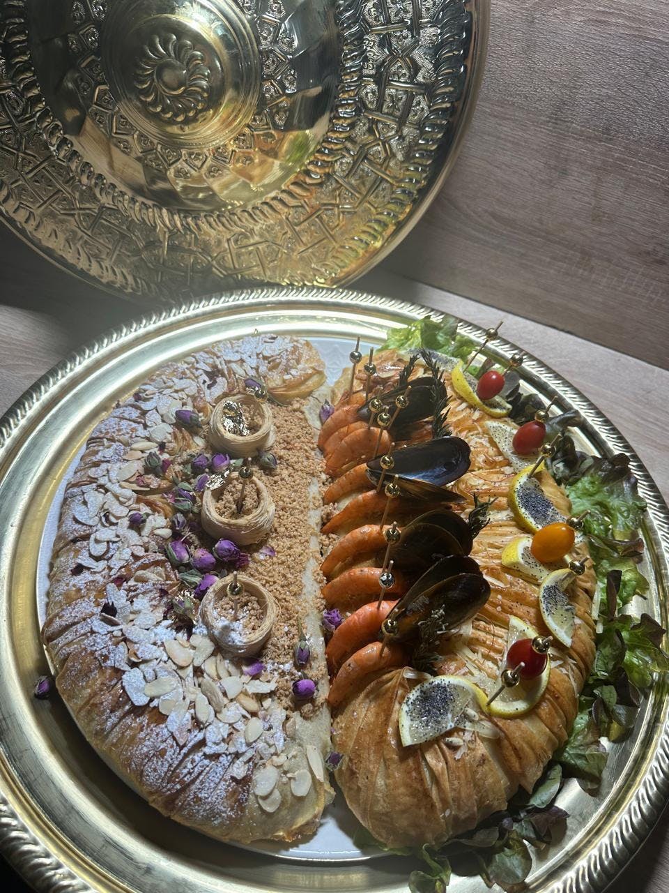 Notre pastilla Twine combine le tendre poulet et les fruits de mer savoureux dans un feuilletage doré et croustillant.