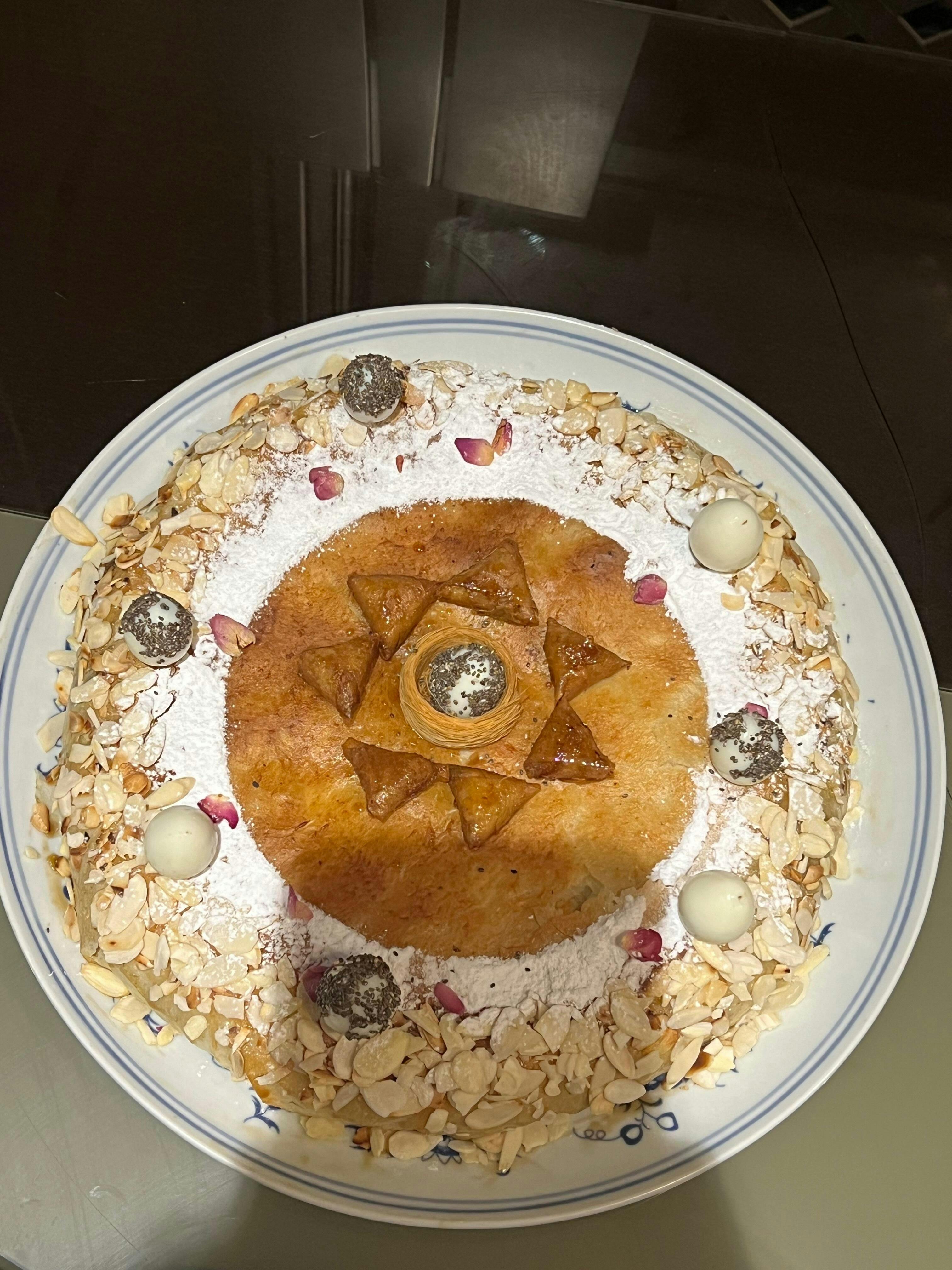 Savourez notre pastilla au poulet sucrée, où le poulet tendre se mêle aux amandes croquantes et à la douceur parfumée de la cannelle. Préparée chaque matin avec soin, elle promet un plaisir gourmand à chaque bouchée. À déguster seul ou à partager, pour des moments sucrés inoubliables.